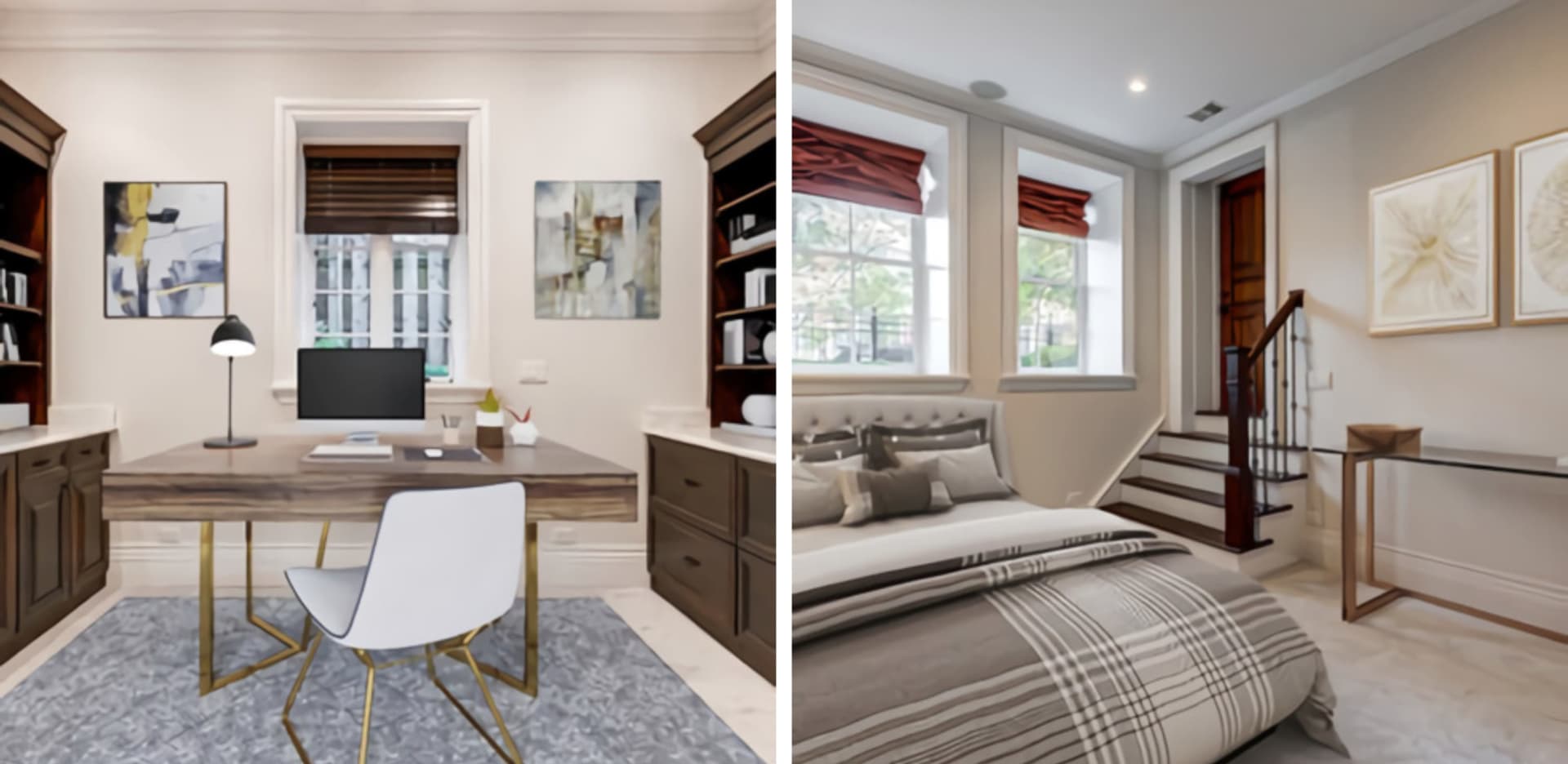 - Finishes include hand-scraped hardwood floors, custom millwork, bespoke wall coverings, and an au pair suite with a private entrance.