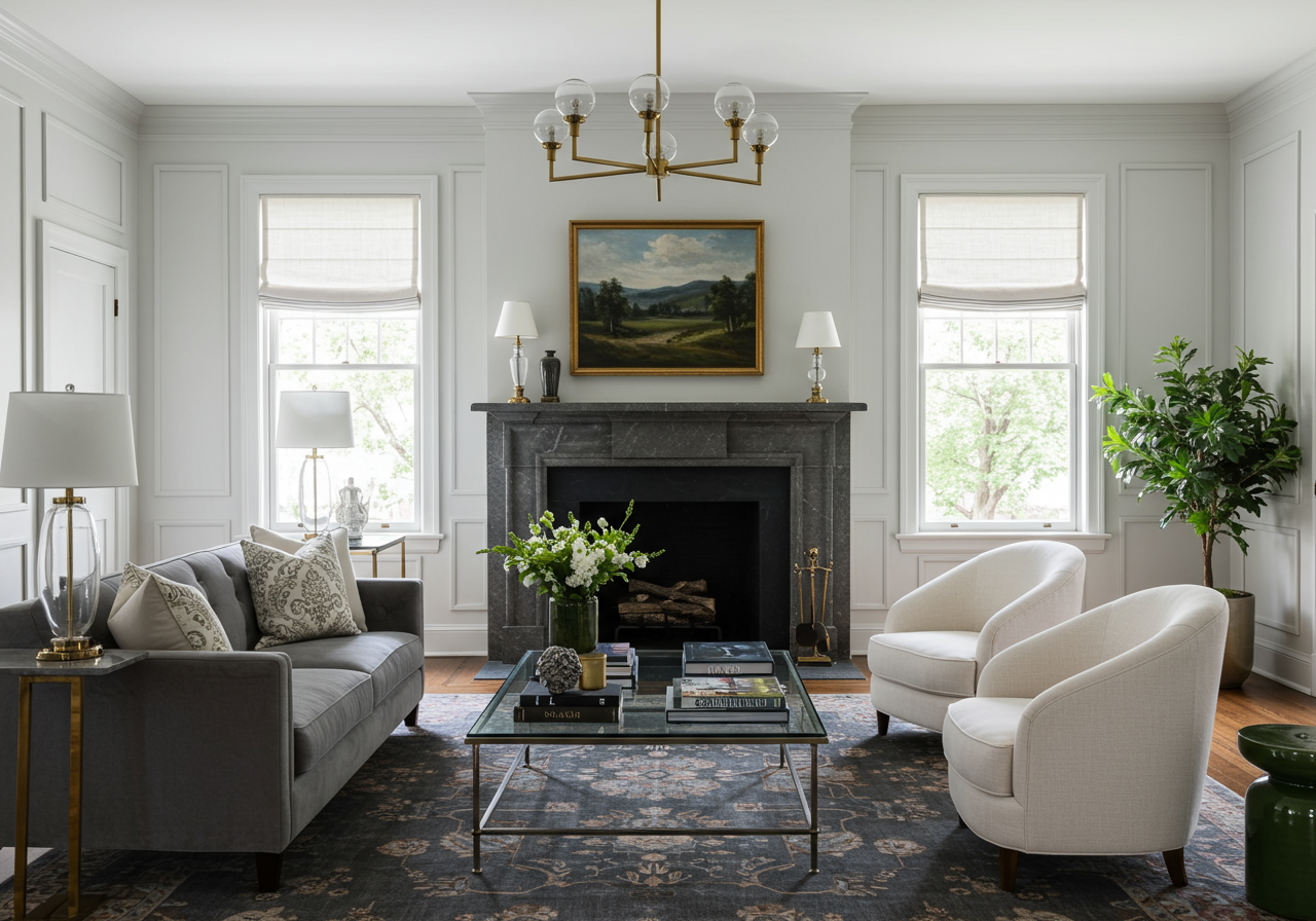 Living Room with Original Fireplace Mantel
